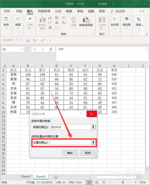 输入完毕,单击确定,迷你图建造完当作。