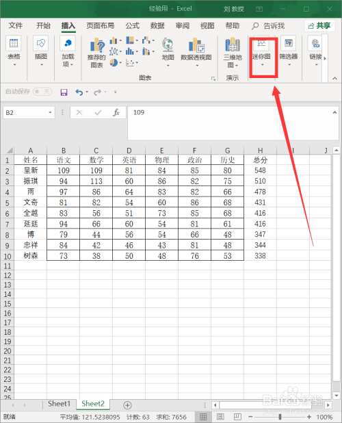 在功能栏找到“迷你图”单击