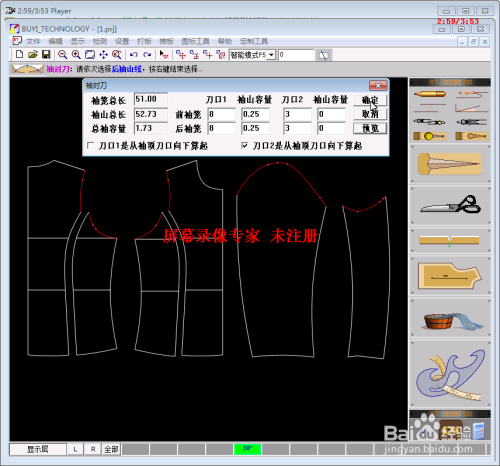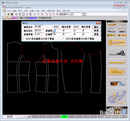前面别离介绍了对前后袖笼线和前后袖山线的选择,此刻介绍最后一部门:如何填选袖对刀对话框。