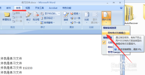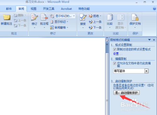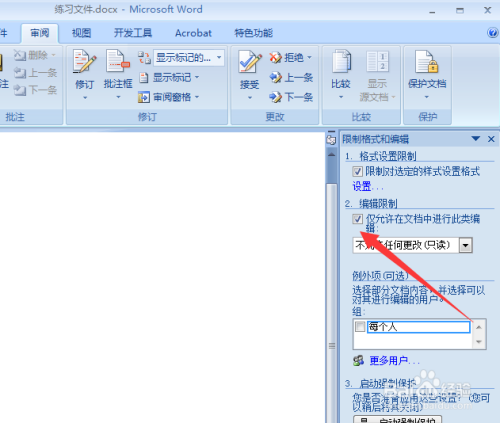 单击核阅标签,庇护文档——限制格局和编纂;