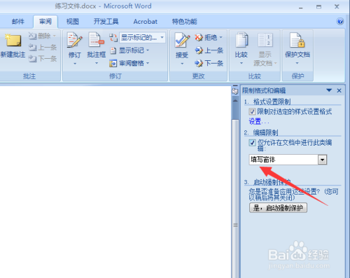 注重,若是还要限制选择、复制、粘贴等操作,在编纂限制项面前目今,要选择“填写窗体”这一项;