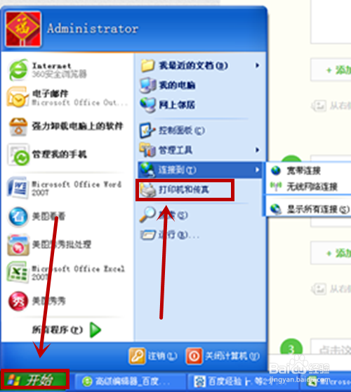 在桌面单击“起头”,找到“打印机和传真”后单击