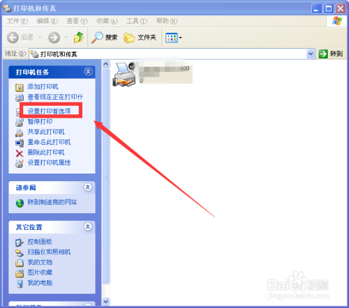 在左边打印机使命中找到“设置打印首选项”单击(也可以鼠标右键找到该项单击)