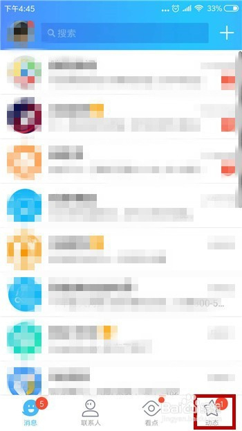 在手机QQ的动静首页中点击右下角的【动态】选项。