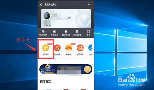 在蚂蚁会员的本家儿页面中,我们找到领积分的按钮图标,点击进去领取蚂蚁积分。