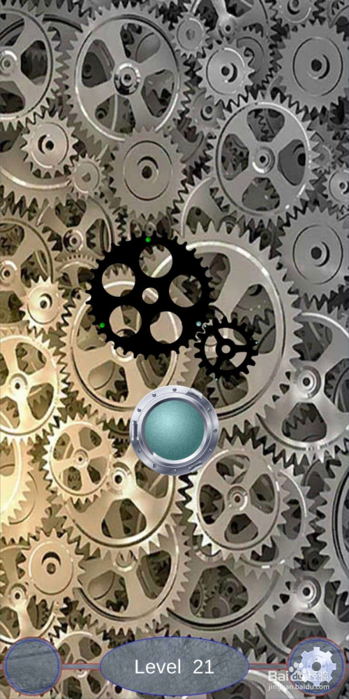 最壮大脑手游第21关通关攻略:点击小齿轮,两个齿轮会动弹,当齿轮的小蓝点转到统一个位置,点击一下蓝色按钮然后年夜齿轮的小蓝点会变绿,然后继续点齿轮动弹,三个蓝点会有三次在统一个位置,即蓝色按钮共要点三次
