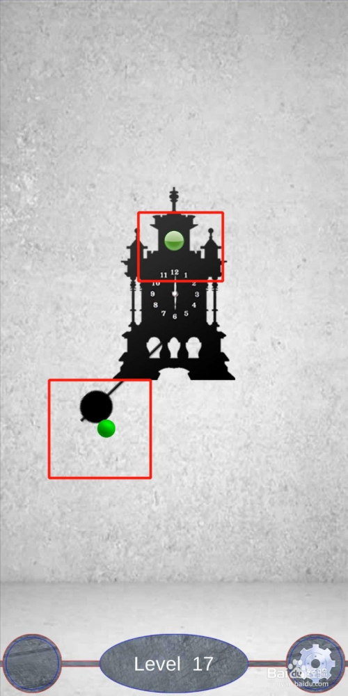 最壮大脑手游第17关通关攻略:节制摆锤撞击红色小球6次,然后钟上面阿谁圆就会酿成绿色
