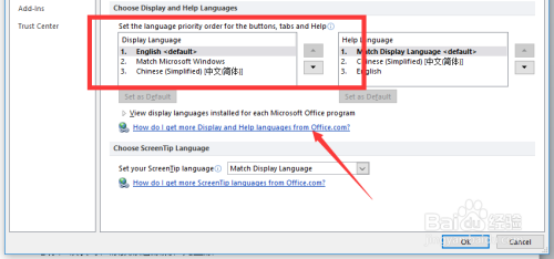点击显示说话下方的一个链接:How do I get more display language and help languages from ……,点击后就会进入微软的一个网页。