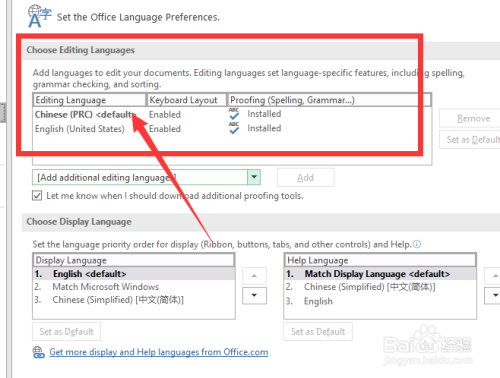 而Editing Languages下方的Display Language,也就是显示说话,可以发现中文不是default(默认)说话。就需要把中文设置当作默认说话了。