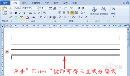 2、然后单击键盘上的”Enter“键,这时双直线分隔线就呈现啦!如图所示: