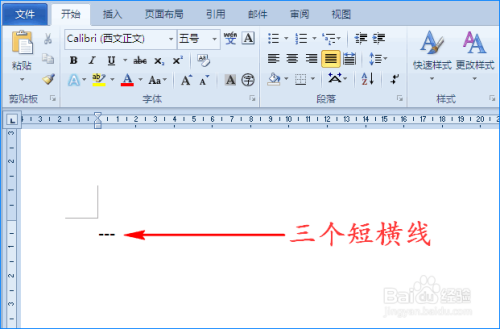 2、接着我们持续三次点击键盘上的减号“-”,这时文档中呈现了三个短横线。如图所示: