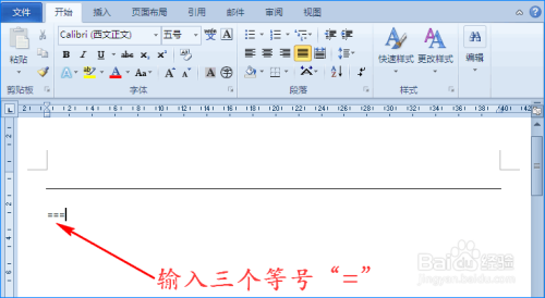 1、我们在需要添加分隔线位置处输入三个等号”=“。如图所示: