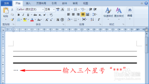 在需添加分隔线位置处输入三个星号”***“,然后单击”Enter“键,即可获得虚线分隔线。如图所示: