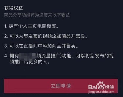 3、进入界面之后,按照提醒进行,操作,申请前提完当作之后,就可以进行商品分享