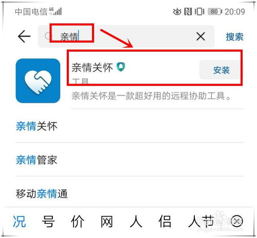 打开应用市场,搜刮“亲情关切”,下载并完当作安装。