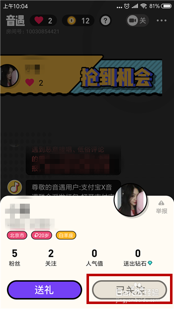 点击后会在底部呈现这小我的小我信息,点击旁边的【存眷】。
