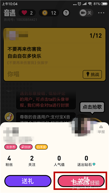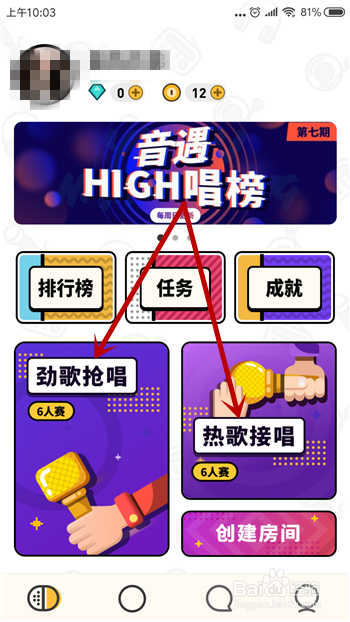 音遇添加老友有两个方式,第一个就是经由过程K歌房间加老友,点击打开音遇后并点击一个K歌模式。