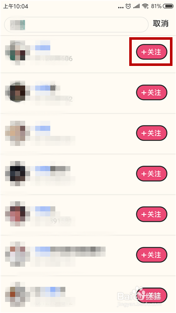 在搜刮界面中搜刮想要添加的老友,然后在搜刮成果中点击后方的【存眷】即可添加老友。