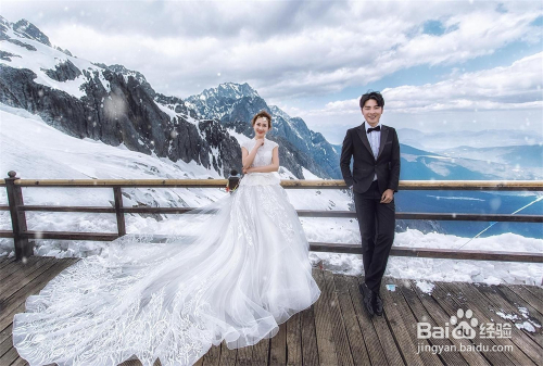 - 玉龙雪山常年积雪,拍摄婚纱照注重保暖。