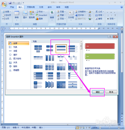 选择垂直项目符号列表后,按确定;