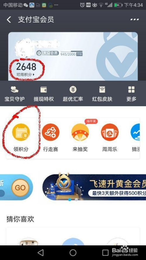 进入蚂蚁会员页面,你可以看见本身的现有积分,再点击“领积分”你就可以领取当天发生的新积分,天天的积分你不领取,第二天城市消逝的所以天天要实时领取