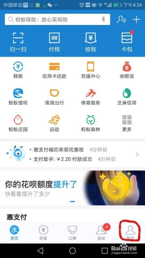 首先进入付出宝首页,在右下角,点“我的”