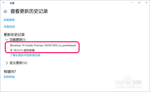 系统进级前的版本为:Windows 10 Insider Preview 18298.1000 (rs_prerelease)。