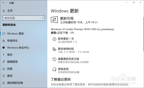 下面是 Windows 10 19H1快速预览版更新到18305版系统教程。