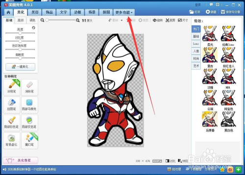 首先我们标的目的美图秀秀中拖入一张图片,然后点击右上角的更多功能按钮
