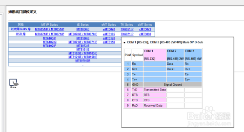 在右侧“通信端口脚位界说”界面中,会显示EasyBuilder Pro软件所撑持的触摸屏型号,点击肆意一个型号,会显示该型号的DB9脚位界说。