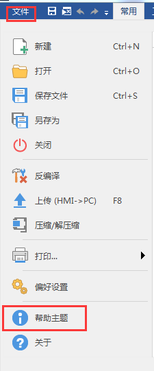 在EasyBuilder Pro软件中,点击“文件”,选择“文件”的下拉菜单中的“帮忙本家儿题”。