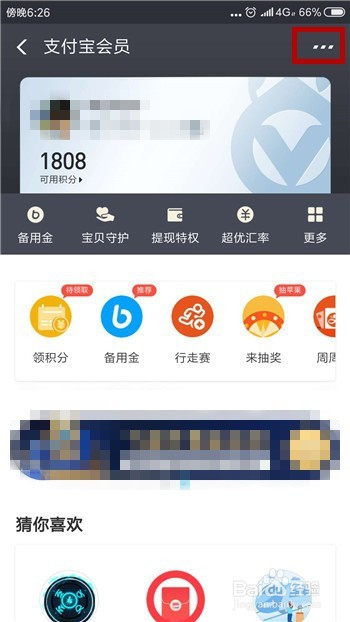 然后在付出宝会员界面中找到右上角的【...】选项并点击。