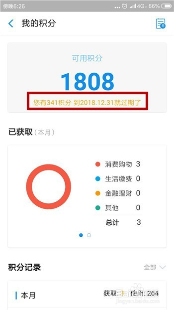 在我的积分界面中可以看到当前的积分,鄙人方会显示出我们有几多积分会在年末到期,小编这里的是341个积分到期。