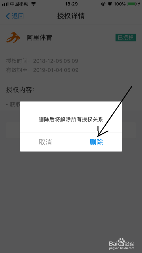 这里已经授权到阿里体育软件了,所以想解除授权点击它。