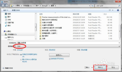 在弹出的“另存为”对话框中,选择所要存储的处所,这里存储在桌面,输入文件名(背影-朱自清),在“保留类型”下拉框中选择“PDF”,完当作后点击确定。