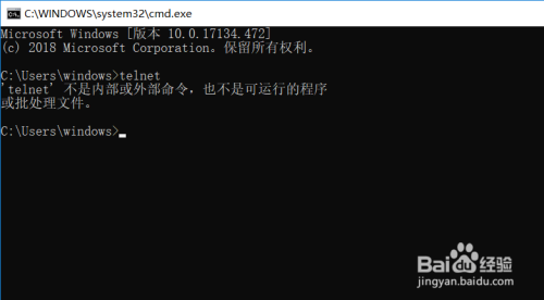 此时在打开cmd对话框输入telnet,就可以看到telnet可以利用了,如下图所示。