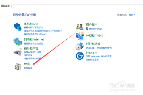 在打开的win10节制面板里直接点击【卸载法式】,如下图所示。