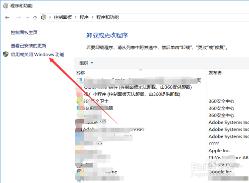 在打开的win10的卸载法式界面里,直接点击左侧的【启用或封闭Windows功能】,如下图所示。