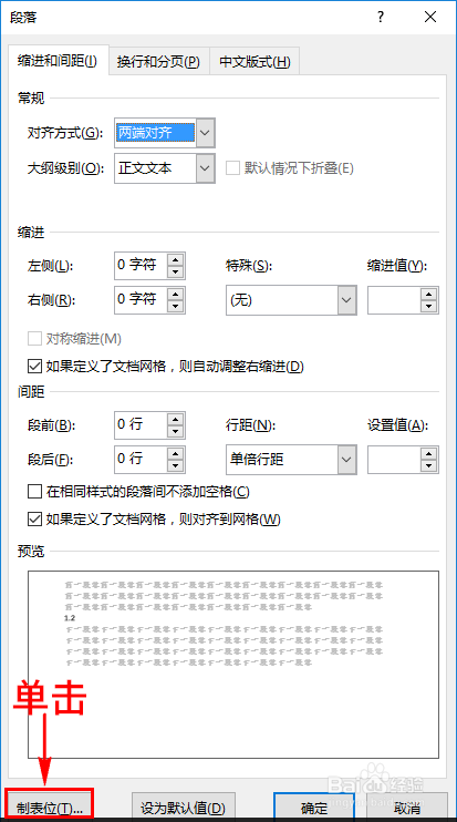 在对话窗中我们选择“制表位”选项,这时又会弹出另一个对话窗。如图所示: