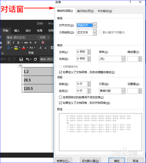 接着我们在“起头”菜单中点击“段落”,这时会呈现对话窗。如图所示: