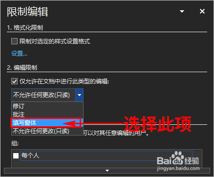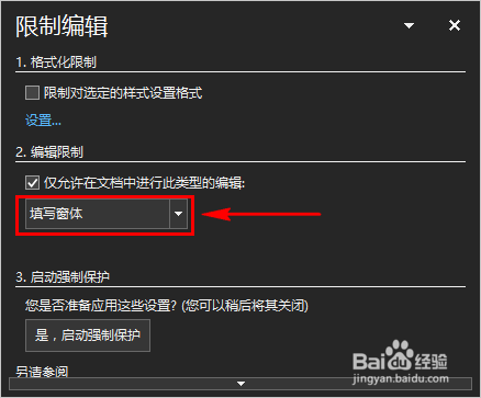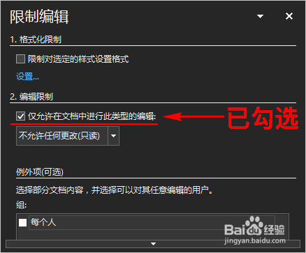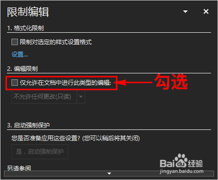 在对话窗中我们勾选“仅许可在文档中进行此类型的编纂”选项。如图所示: