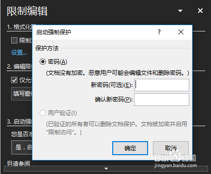 在密码设置窗口中我们输入新密码和确认密码,最后点击“确定”按钮,如许我们的文档就获得庇护啦!复制和其他操作都不克不及用哦!如图所示: