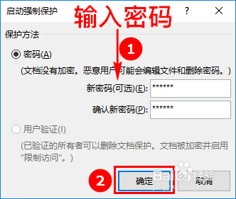 然后在“启动强制庇护”处我们选择“是,启动强制庇护”,这时会弹出密码庇护设置窗口。如图所示: