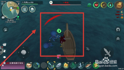 第五步,利用船划到章鱼身边,如下图