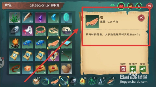 第四步,在海里面只能经由过程船来航行,筹办船一条,如下图
