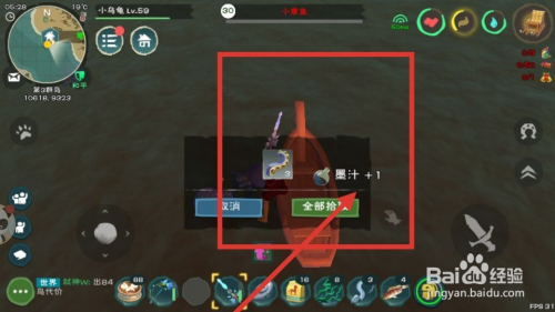 第六步,下船切换剑进犯章鱼,直到章鱼灭亡,然后拾取物品,如下图