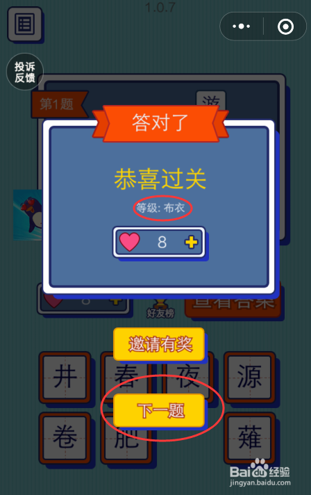 答对,可以进入“下一题”。