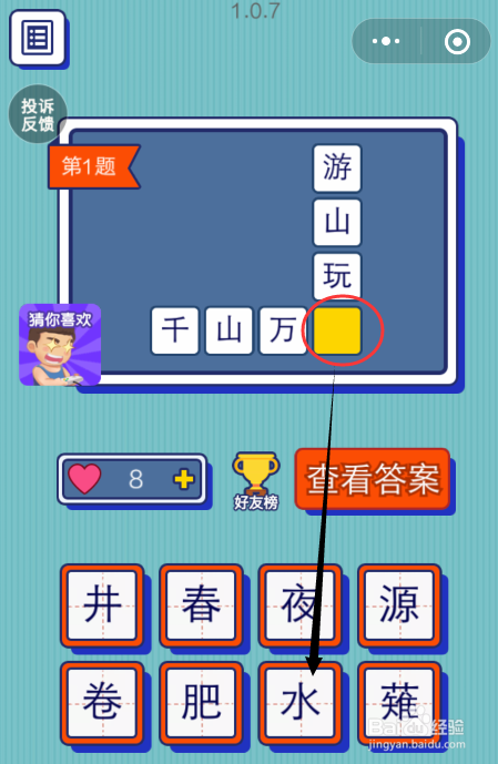 好比:千山万水,可以点击“水”。