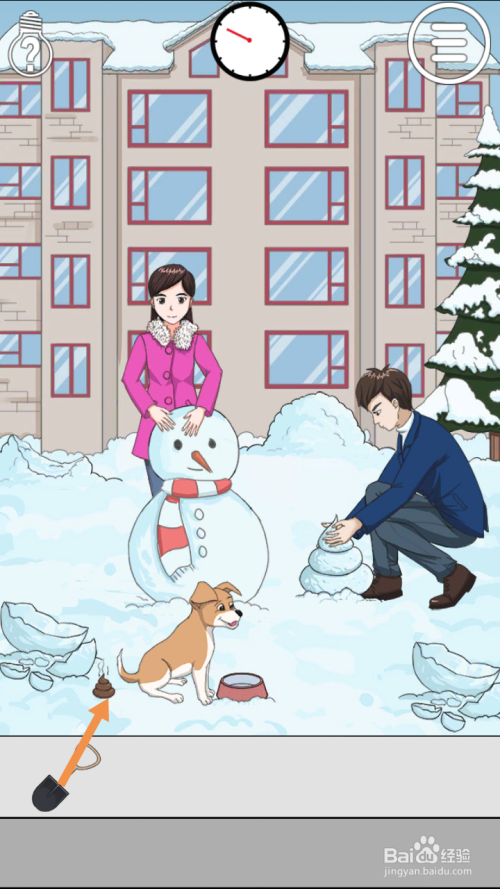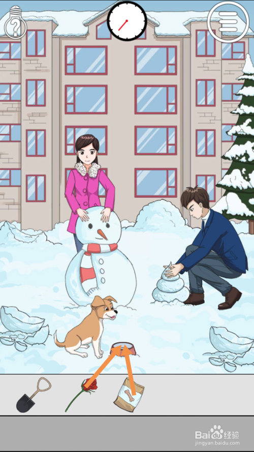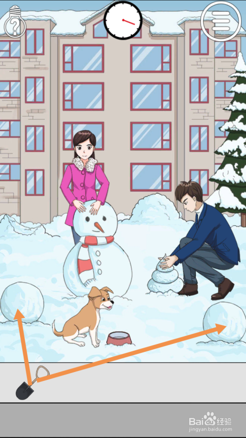 获得铲子后,将铲子拖动到下图中箭头标注的两个雪球。