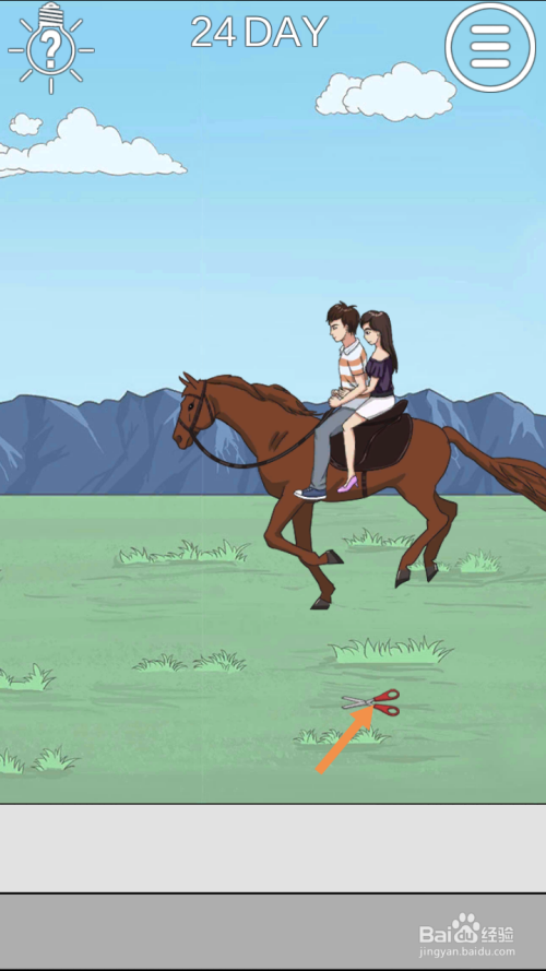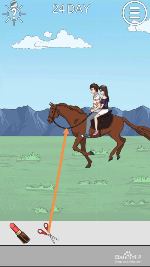 获得口红和铰剪后,将铰剪拖动到缰绳上,然后将口红拖动到马身上就可以过关了。